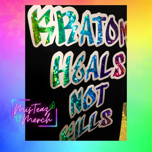 Kratom Heals Not Kills, Rainbow crystal holographic HTV