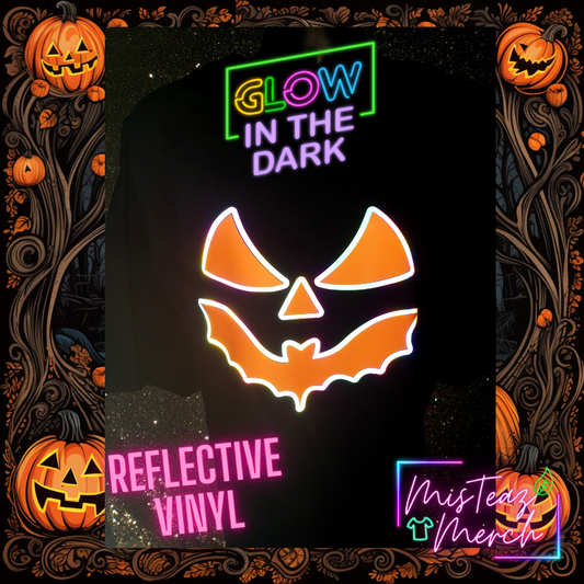 Everyone who loves Halloween & TV Crime shows will love these T-shirts. They are funny, cute, sassy & scary. Something for everyone. This year we got our new glow in the dark & reflective vinyl designs. Dressing up is fun, but sometimes you just feel like a cool T-shirt. All the designs here can be put on a sweat shirt or hoodie. Some shirts are made with a white toner printer (DTF) not vinyl. If you want a glitter shirt then email me for a glitter design and if you want a design on a hoodie or sweat shirt. I know some parts of the U.S. it is cold during Halloween.