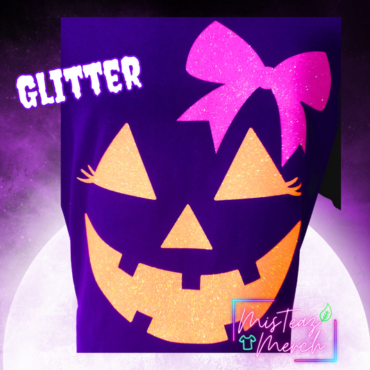 Glitter Halloween tshirt #2 Pumpkin face & Bow