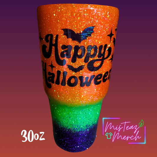 Happy Halloween Pumpkin face Orange, Green & Purple Custom Glitter, Stainless Steel Epoxy Tumblers, Mug, & Wine Cup