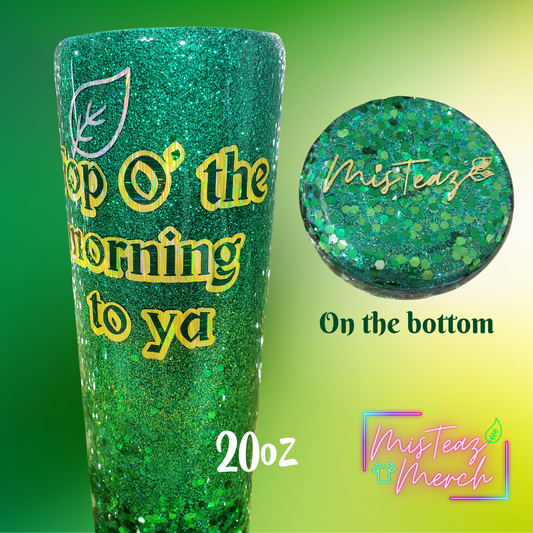 House of Kratom Fine Malt Tea Green & Gold Custom Glitter, Stainless Steel Epoxy Tumblers, Mug, & Wine Cup