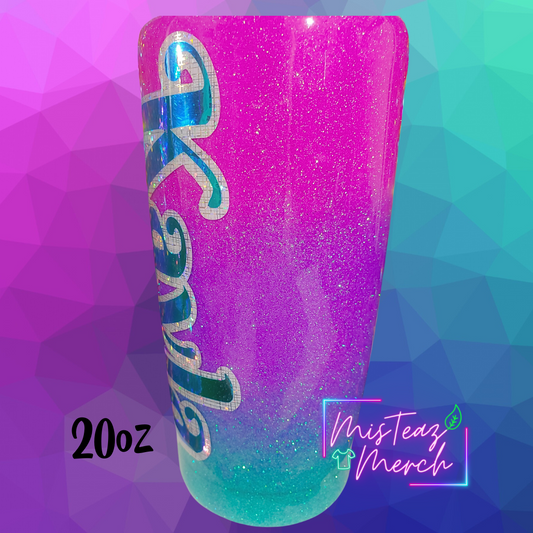 Purple, Pink, & Teal Custom Glitter Stainless Steel Epoxy Tumblers, Mug, & Wine Cup