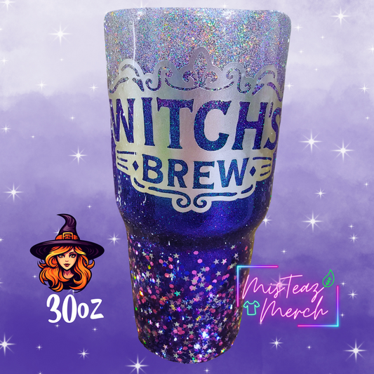 Witch's Brew- purples & silver Custom Glitter, Stainless Steel Epoxy Tumblers, Mug, & Wine Cup