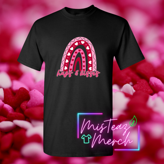 Valentine's Adult T-shirt - Hugs & Kisses Rainbow