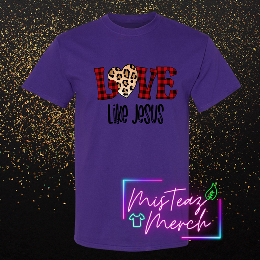 Valentine's Adult T-shirt -LOVE Like JESUS- Cheetah Heart